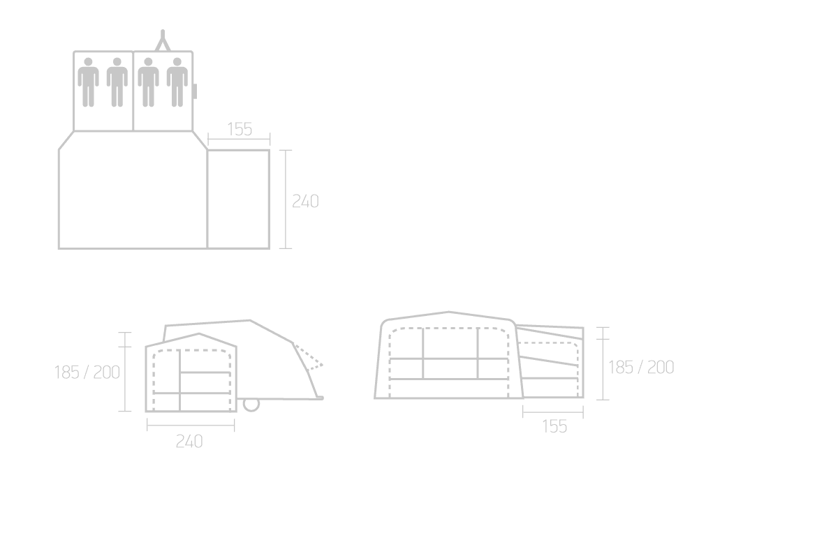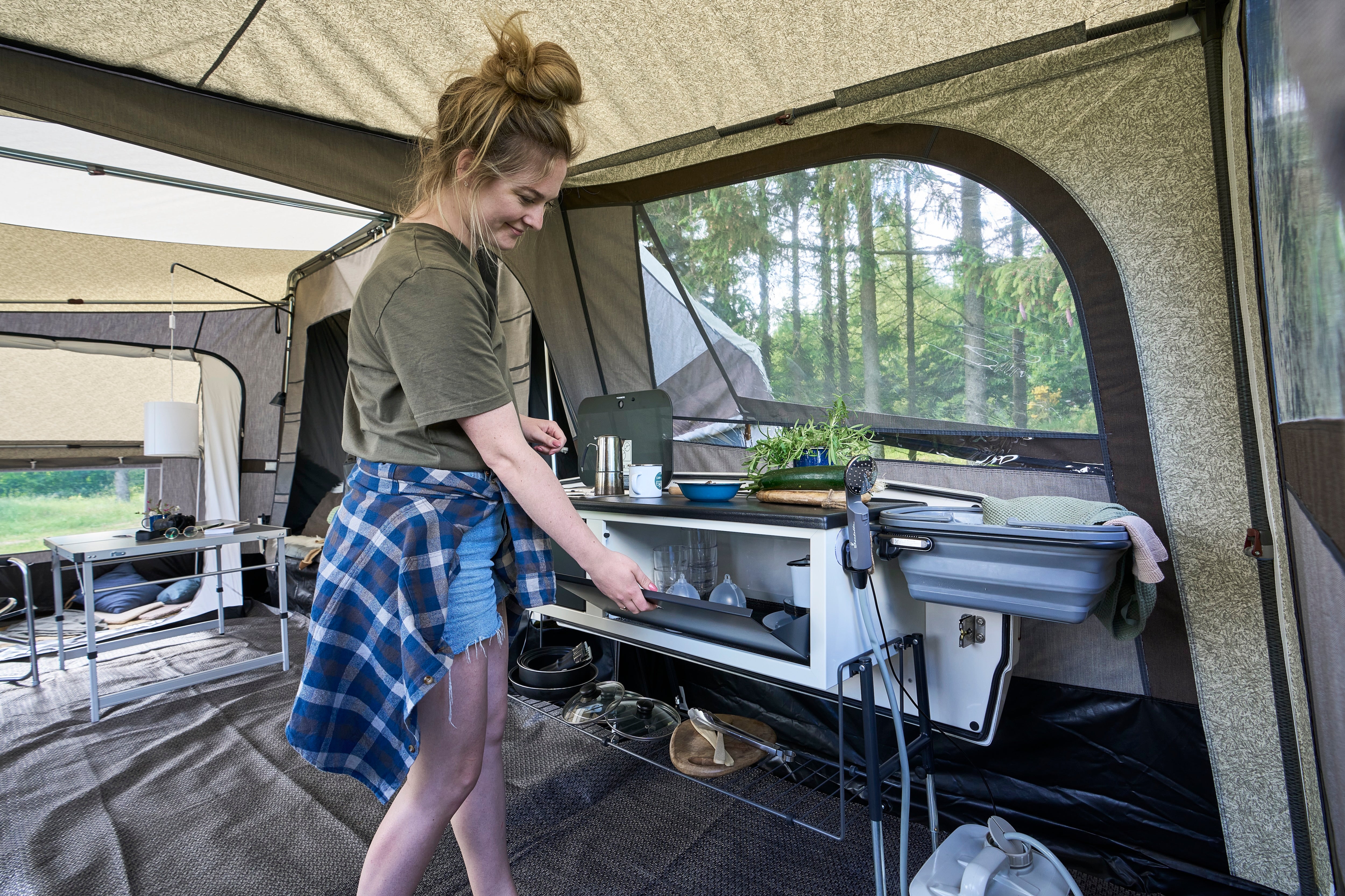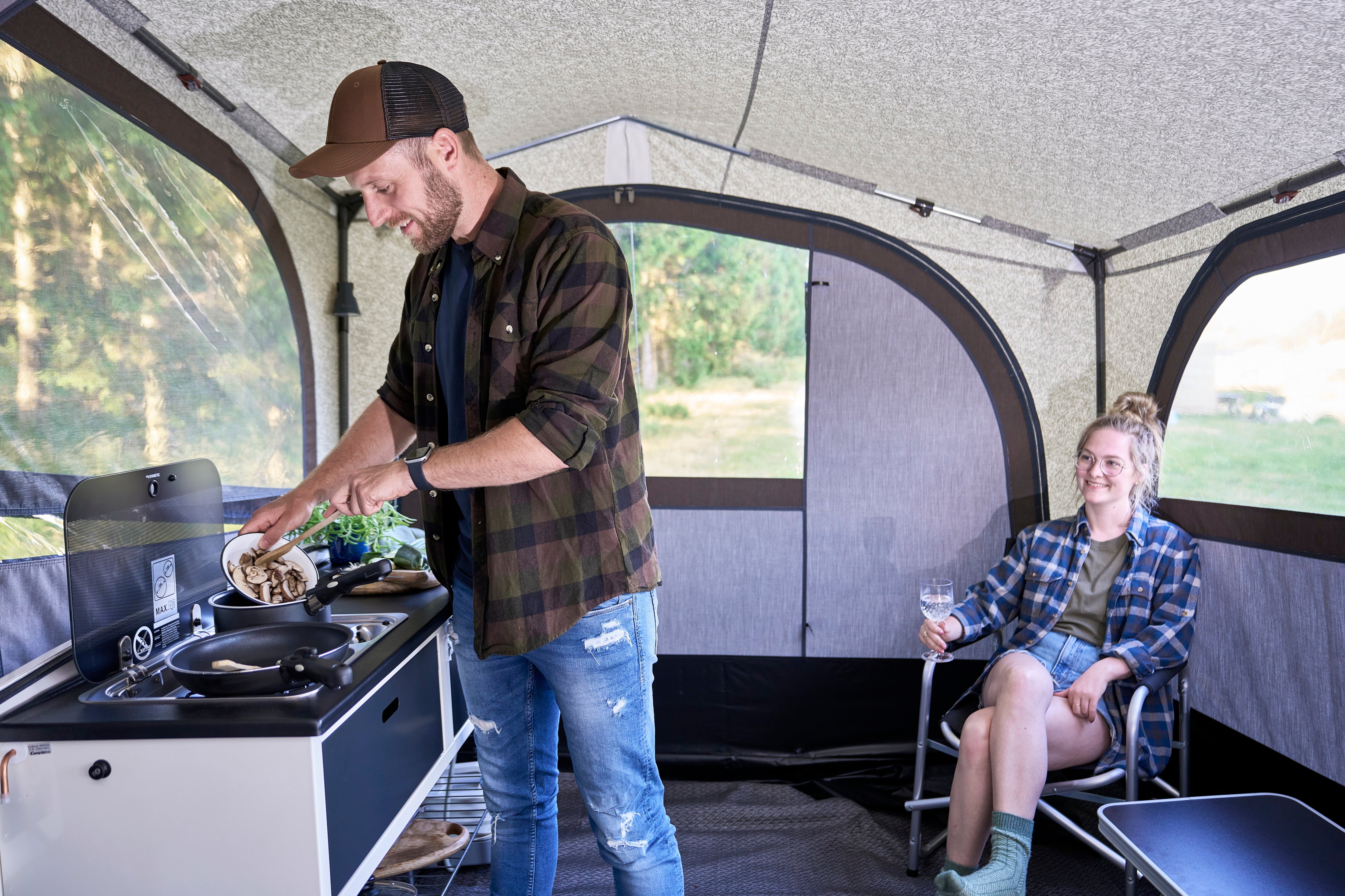 When paired with the optional kitchenette, the side tent provides full coverage for cooking and preparation. Rain or shine, you can make coffee, cook dinner, or dry gear under its protective roof. It’s functional Scandinavian design — simple, practical, beautifully made.