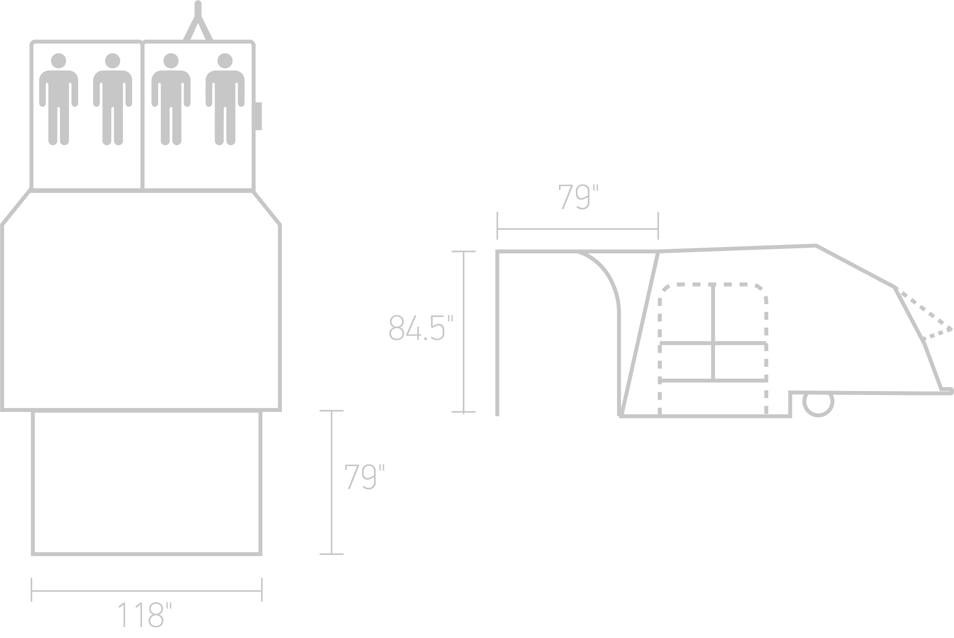 The Sun Canopy zips directly onto the front of main unit, following cleanly on the roof line. Three lightweight CarbonX poles and guy ropes give it shape and hold it steady.